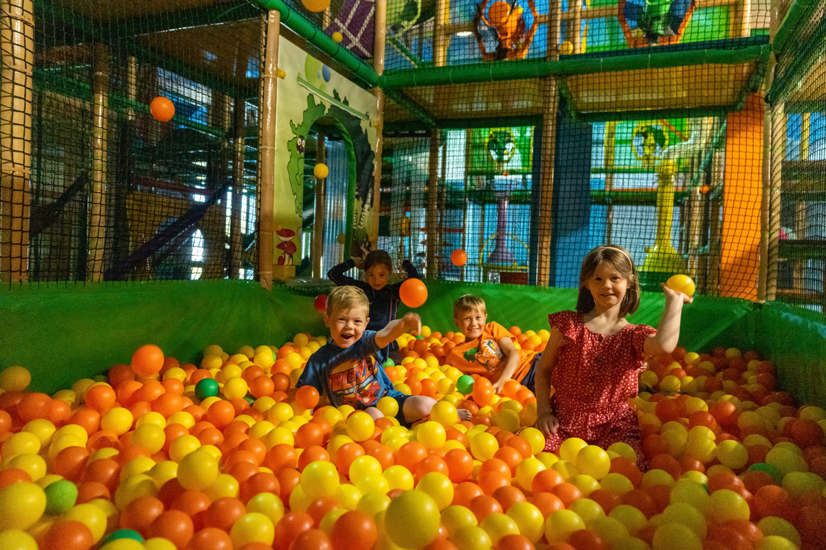 Skoskogen our indoor playing area. Run, climb, jump, crawl and balance amongsts obstacles such a mushrooms, trees and Mikkel’s shoes! Adults can let their inner child free or enjoy a cup coffee from the cafe while letting your children run free.